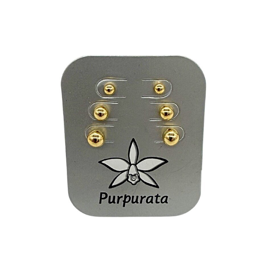Trio de brincos banhados a ouro com design minimalista e elegante. Modelos em formato de esfera em tamanhos diferentes, perfeitos para compor combinações versáteis e sofisticadas no dia a dia.