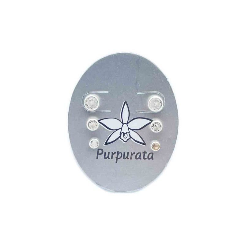 Trio de brincos com zircônias.