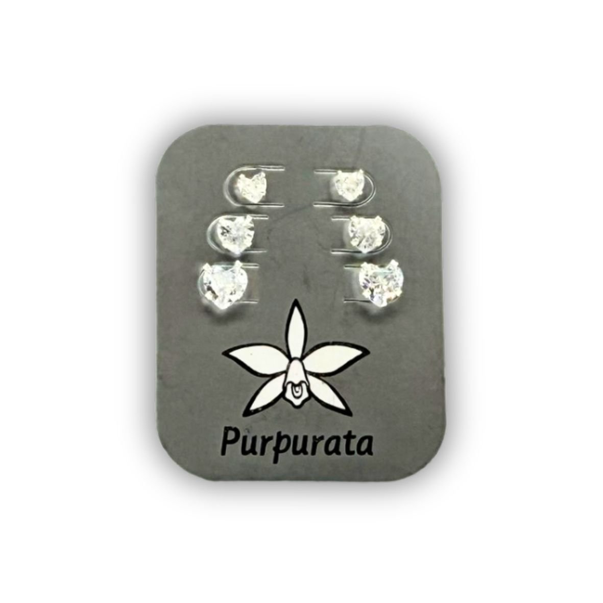 Trio de brincos com zircônias em forma de coração de tamanhos diferentes.